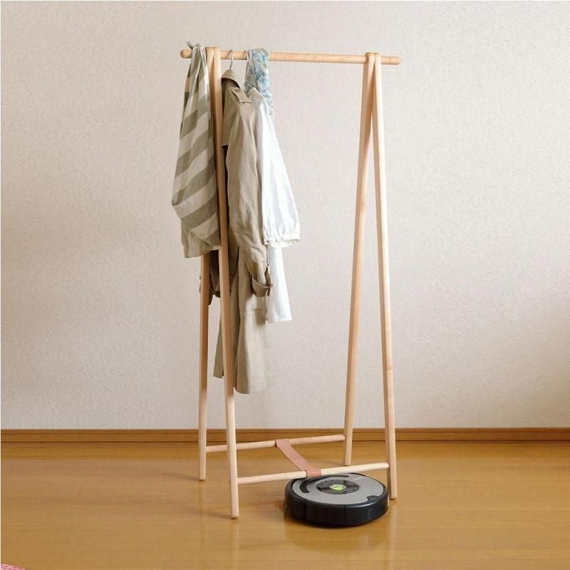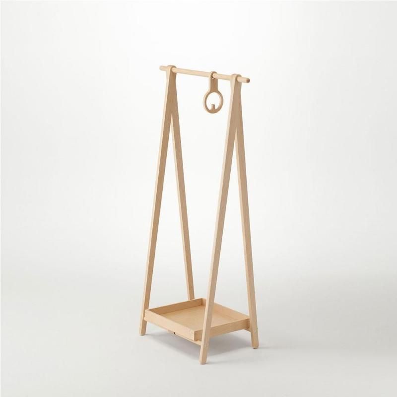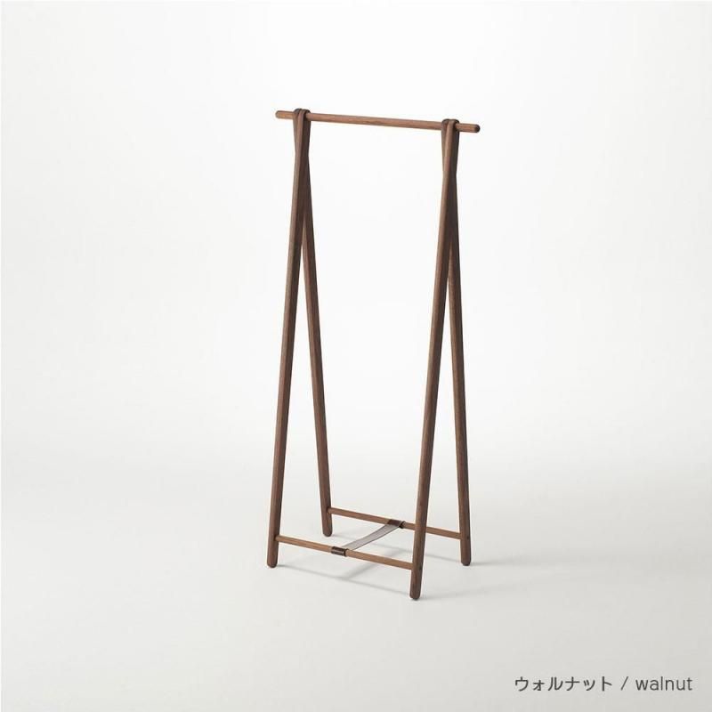 コサインのハンガーで17着以上掛かる収納力と、たたんで移動できる身軽さ、どこに置いてもシンプルで飽きのこない美しいデザインと素材感が特徴です。