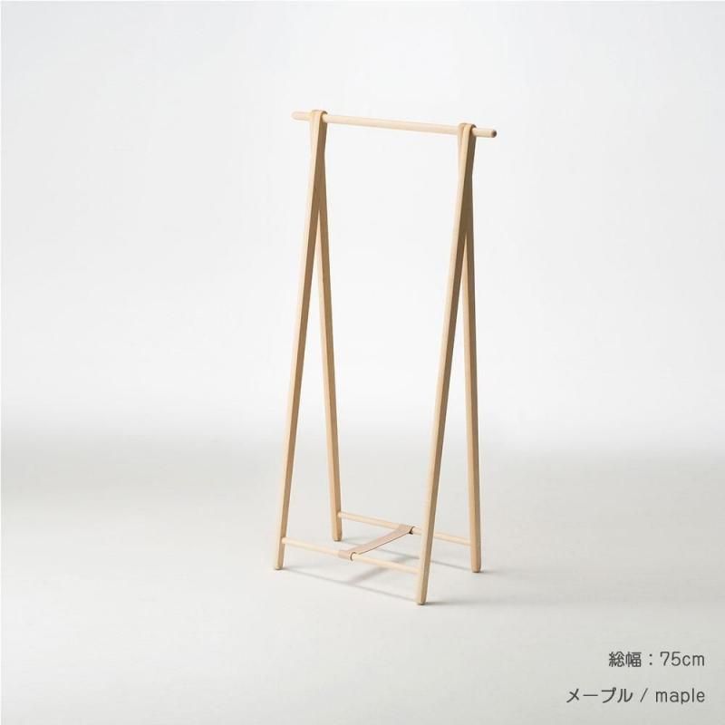 様々なテイストに調和するシンプルデザインでありながら、どこか自分らしい空間を作ってくれる意匠と素材感が魅力。ドレスラックと同様の脚の緩やかなかまぼこ面や丁寧に仕上げた丸棒は全体の印象を和らげ、手に触れたときにも優しい感触です。脚下の丸棒に渡す革ベルトも全体の印象に調和するナチュラルな色と質感のものを選びました。