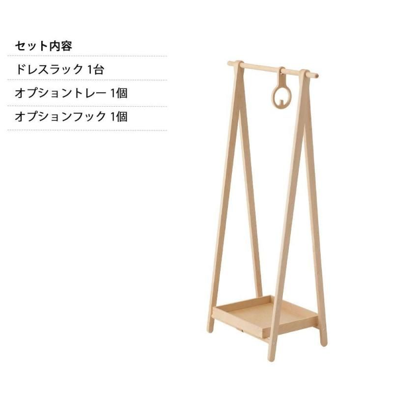 ドレスラックとバッグを置いたり、カゴやバスケットに小物をまとめて置いておくことができるオプショントレー1個、ストールやショルダーバッグを掛けることができるオプションフックをセットにしました。身の回りの物、身につける物をすっきり一箇所にまとめて収納できます。