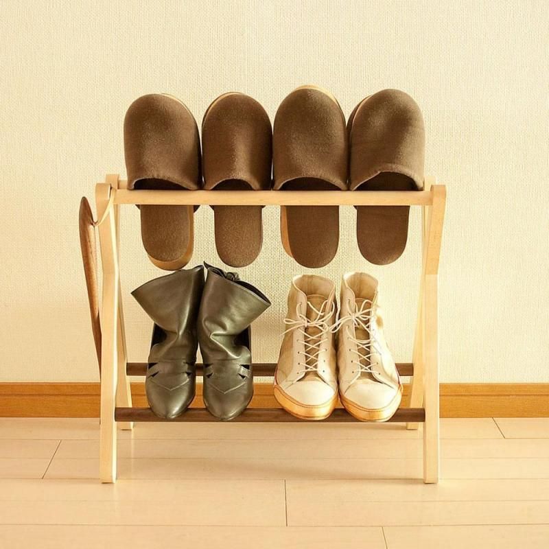 上部にはスリッパを、下部には靴をすっきり収納。軽くて持ち運びやすいサイズ感とシンプルな形で、玄関を快適に整えます。