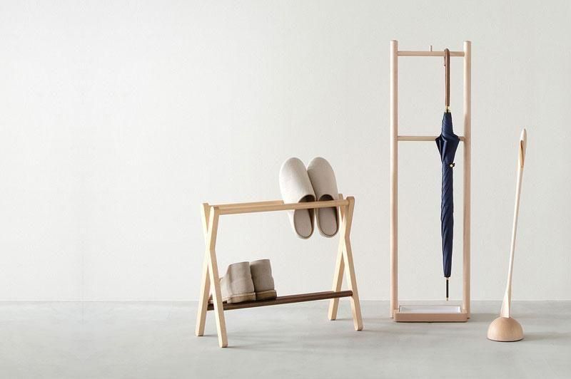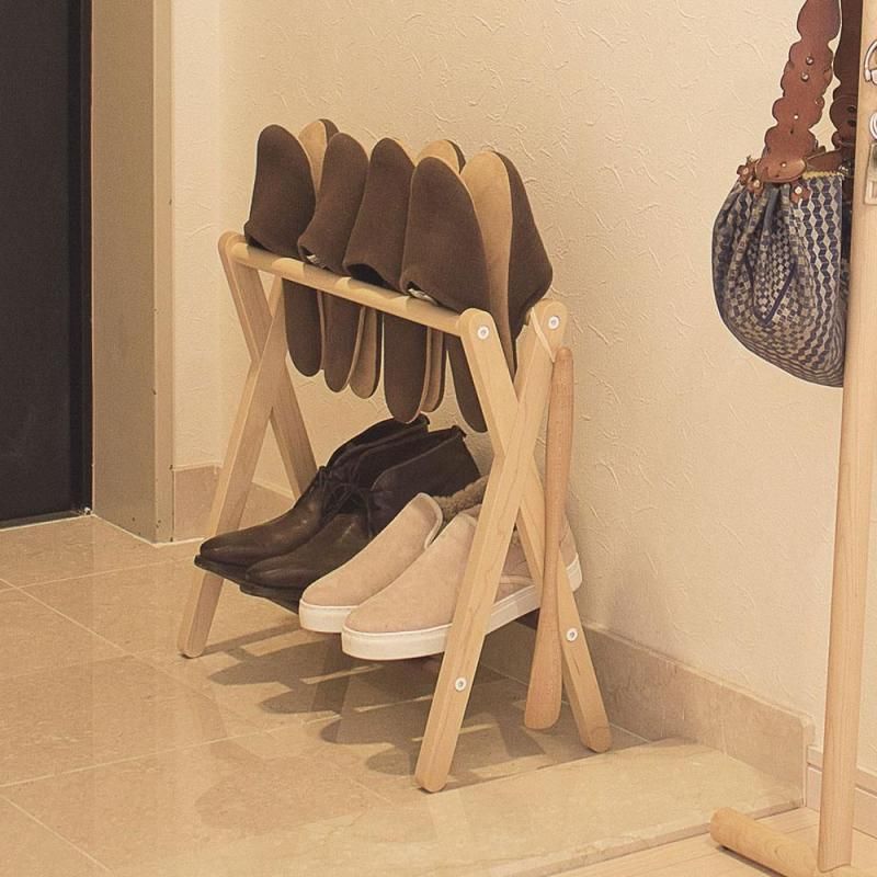 下部の丸棒は、1日履いた靴をしまう前に乾かしておける一時置き場にぴったり。出しっぱなしになりがちなサンダルの定位置としても便利です。