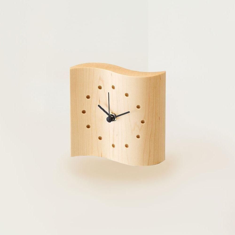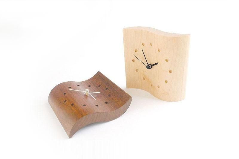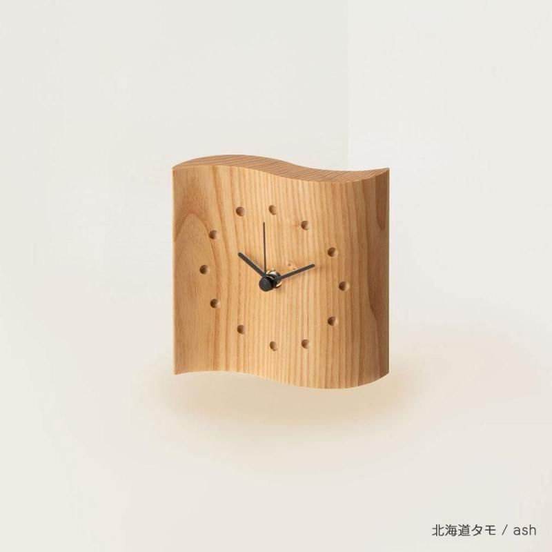 重厚な無垢材をウェーブ状に削り出し、木目の美しさを引き立てた特別な時計です。