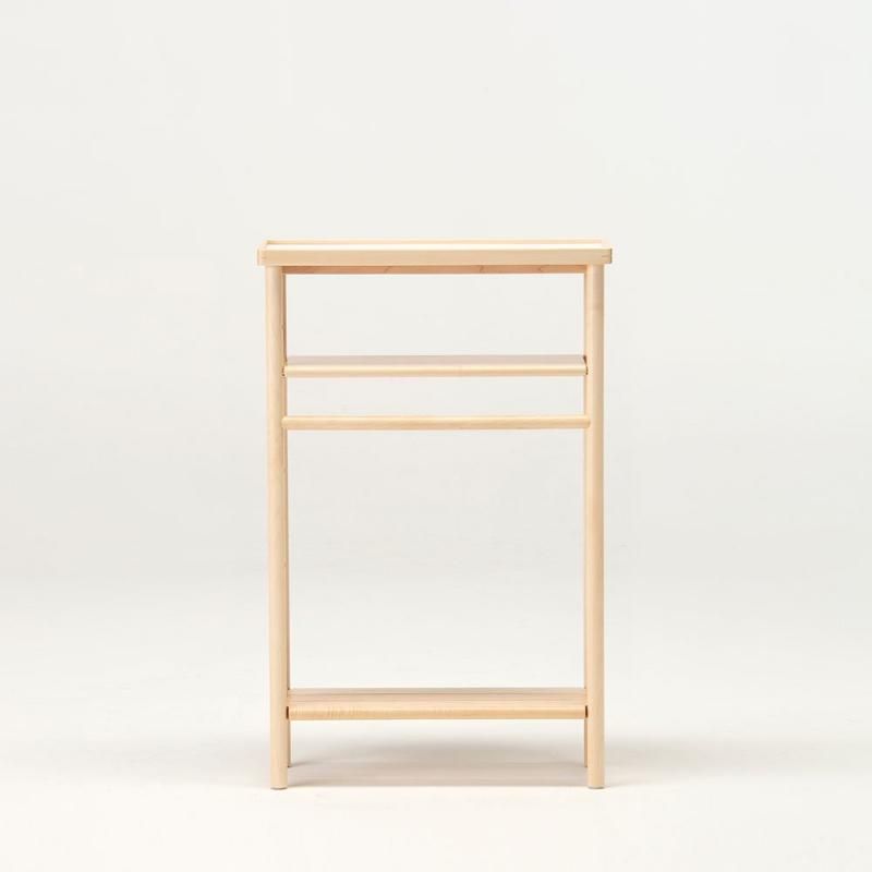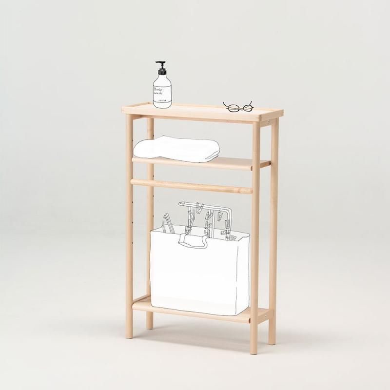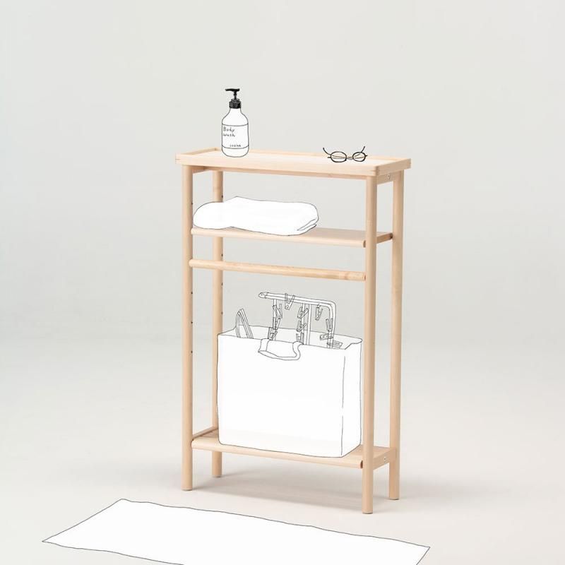 洗面室での収納と入浴の前後に使うテーブル、2つの機能を兼ねたバスラック。