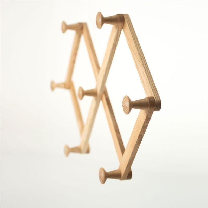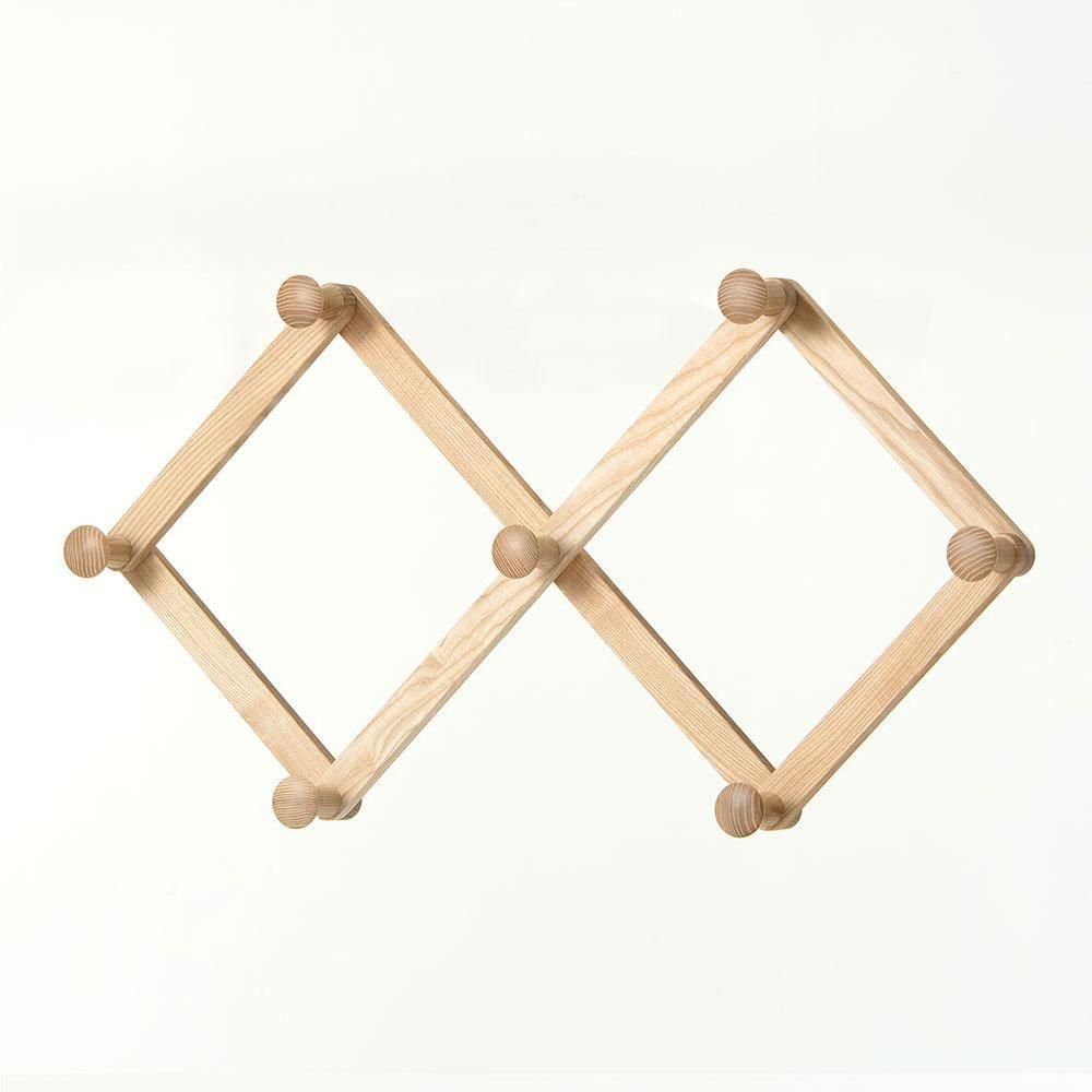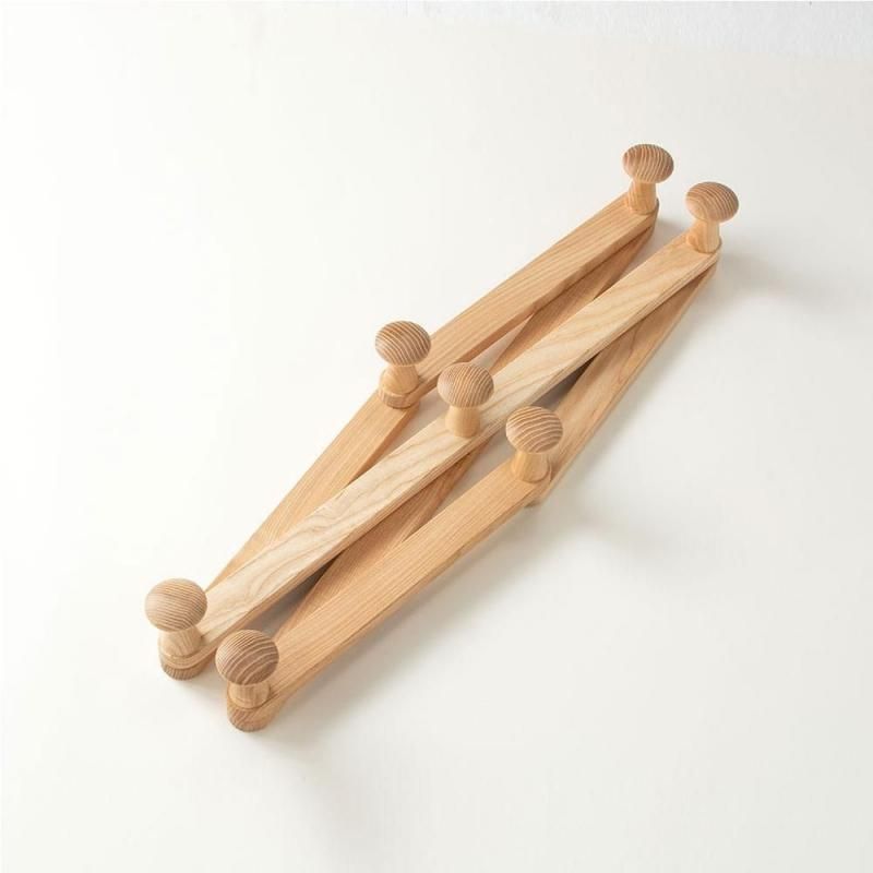 各パーツは端部まで丁寧に加工され、無垢材から削り出された丸みのあるフックが壁面にアクセントを与えてくれます。