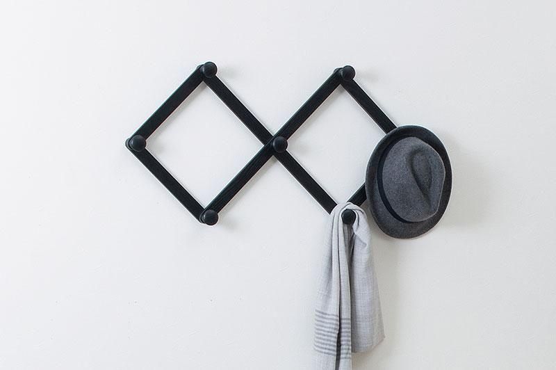連結した7つのフックが程よい間隔で配置され、帽子やコートをバランス良く掛けられます。