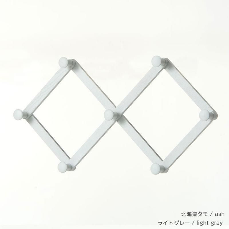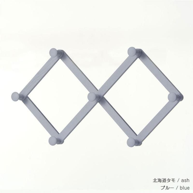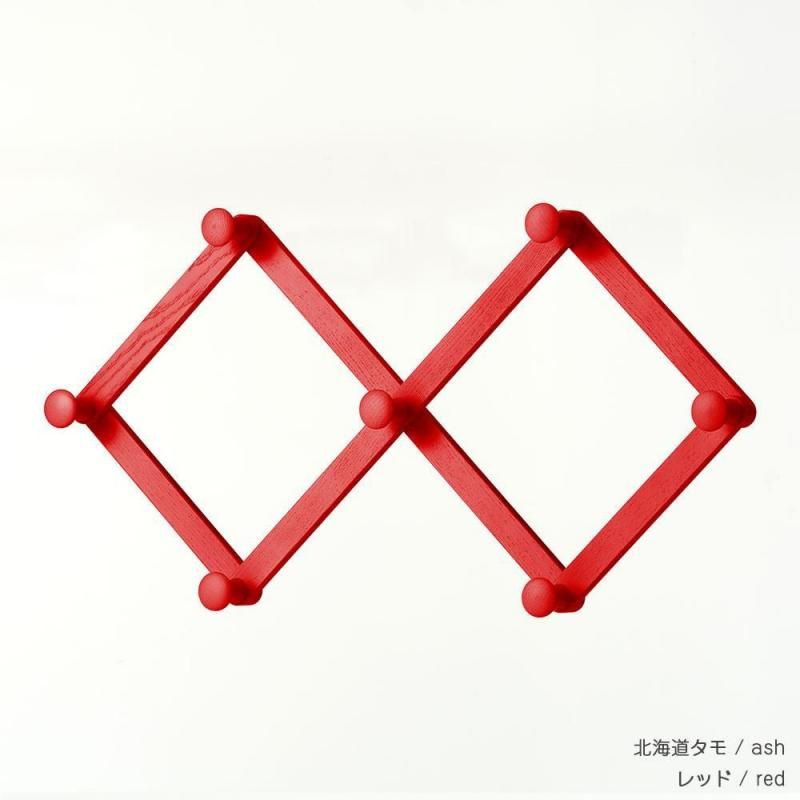 アコーディオンフックは、ナチュラルに加えインテリアのアクセントになるブラック、ライトグレー、レッド、ブルーからお気に入りのカラーをお選びいただけます。