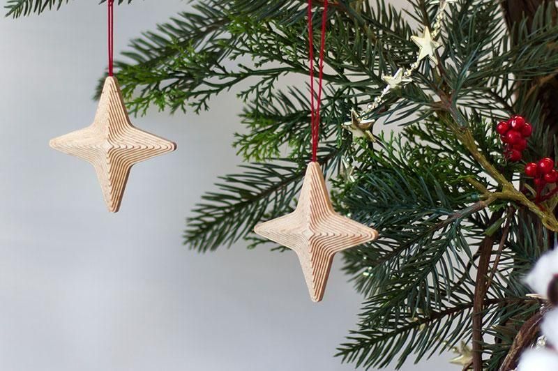 木のぬくもりとシンプルなフォルムが、ツリーや壁面に新しい印象を添えます。